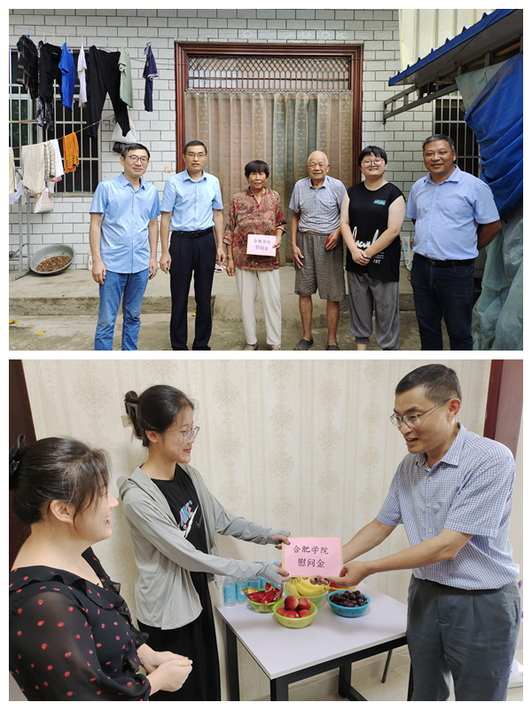 为进一步加强国家资助政策宣传,提高资助精准度,增强资助育人实效,8月12日—13日,我院通过线下实地走访的方式开展2023年暑期走访慰问家庭经济困难学生活动。 走访期间,院党委书记刘良宏、副书记王迅、党政办主任杜启明、学工办主任符琳一行前往蚌埠市、宿州市埇桥区两地,对两名家庭经济困难学生进行实地家访,并带去慰问品。在学生家中,大家向学生家长反馈了学生在校的学习生活情况,了解了学生家庭的经济来源和实际困难,并向家长介绍了国家、学校、学院的相关资助政策,征集家长对学生资助工作的意见和建议。家长对学校学院给予的慰问和关心表示由衷感谢,并表示会积极支持配合学校学院,继续支持孩子读书学习,做好孩子的教育管理工作。