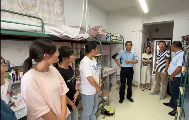 为了解我院学生住宿和生活情况,引导新生尽快适应新生活新环境,9月7日下午教育学院党委书记刘良宏,副院长(主持工作)刘红带领院领导班子和学工队伍一同走访23级新生宿舍,关心慰问刚入学的新生,深入了解新生思想、学习、生活、安全、卫生等情况。