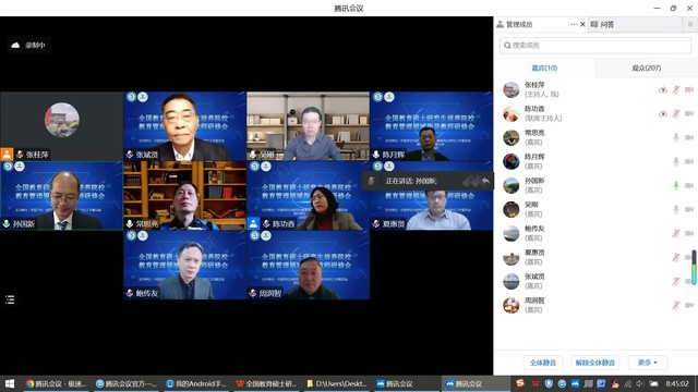 为贯彻落实全国及全省研究生培养和管理相关会议精神,建设高质量的研究生导师和教育管理队伍,1030日,教育学院组织教育专业学位硕士生导师参加全国教育硕士研究生培养院校指导教师研修会(线上会议)。此次会议由中国学位与研究生教育学会主办、济南大学承办,来自北京师范大学、华东师范大学、湖南师范大学、安徽师范大学、上海师范大学等全国80多所高校的近200位代表共聚云端,就教育硕士研究生培养和管理等议题进行了热烈而深入的研讨。刘红、谢兆树、刘菂斐、卫萍、陈芬萍、夏蓓洁、陈艳艳等12位研究生导师或管理人员通过视频连线参加了此次会议。