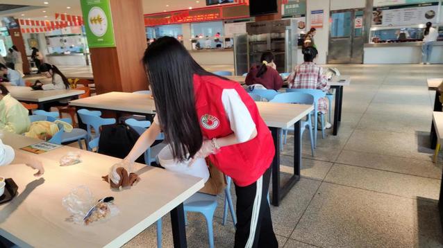本次志愿活动分为食堂服务和停车两个部分。在食堂活动中,同学们分为四个小组帮助食堂工作人员开展工作,包括倒剩饭剩菜、打汤、运餐盘、擦桌子等。大家坚守在自己的岗位,认真负责,为食堂营造干净舒适的用餐环境贡献自己的力量。