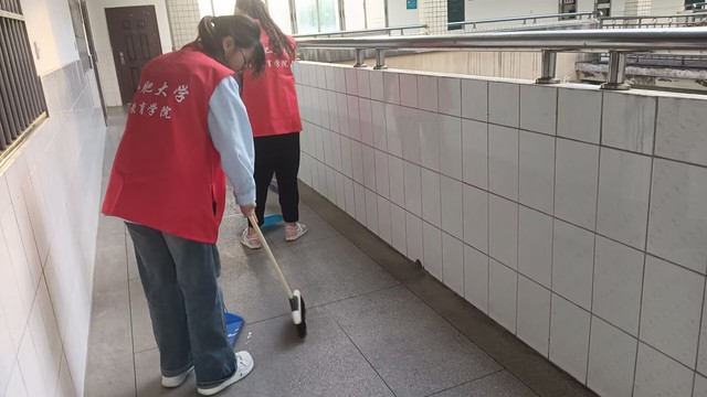 为响应国家号召,弘扬劳动精神,培养同学们的劳动意识,提高同学们的劳动技能以及综合素质,教育学院于5 月 9 日至 11 日开展了以“劳动筑梦•书写人生篇章”为主题的劳动周活动。此次活动的主要内容为打扫三栋教学楼和艺术楼,活动得到了同学们的积极参与。 在活动开展前,教育学院志服队做了充分的准备工作,包括制定清洁计划、分配任务、准备清洁工具和材料等。在活动期间,志愿者们穿着统一的服装,手持清洁工具,认真投入到打扫工作中。