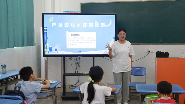 默契大考验,预热情绪之旅。在课程正式开始之前,老师组织了一场“你划我猜”的趣味小游戏来集中小朋友们的注意力,一位小朋友上台用肢体和语言来描述自己看到的词语,台下的小朋友们猜是什么词语。老师通过游戏激发小朋友们对课程内容的兴趣,使他们在轻松愉快的氛围中进入课堂学习状态。 情绪万花筒,探索多彩世界。在课堂上,老师运用具体的事例向小朋友们介绍情绪的多种类型,比如在和朋友们游戏时会感到开心;遇到有人插队时会感到生气;不小心摔跤时会感到难过;下暴雨时会感到害怕等等。接着,老师设置特定情景,让小朋友们答出对应情景下的情绪,帮助他们更好地理解自己的情绪,提高情绪感知能力。 情绪调色师,绘制内心风景。随着课程的深入,老师引导小朋友们回忆近期发生的事件以及当时的情绪体验,在纸上用色彩缤纷的画笔填充纯白的蛋糕。从孩子们的作品中可以看出:活泼开朗,喜欢与人交流的小朋友的蛋糕偏明亮;内向沉静,不善与人交流的小朋友的蛋糕偏暗淡。不同的色调体现着小朋友们在不同情景中产生的各种情绪类型。