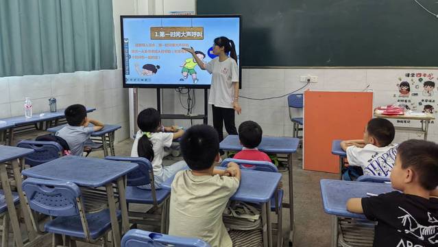 课程中,教师详细介绍了游泳的注意事项,如何正确施救溺水的人。作为学生,在发现有人溺水时,首先要保持冷静,然后迅速寻找周围可用的救援工具,如救生圈、竹竿等,同时大声呼救,寻求周围成年人的帮助。避免盲目下水施救,将自己的安全放在第一位。 课程最后,教师就如何自救进行提问,学生们踊跃发言:“要保持冷静,不要惊慌失措”“要寻找机会呼救”“有漂浮物时,可以抓住漂浮物”“要尽量保持头部在水面上,利用身体的浮力支撑自己”……课堂的气氛活跃热烈,学生们的回答此起彼伏。他们积极参与课堂问答环节,还在课后主动询问老师更多关于水域安全的问题。