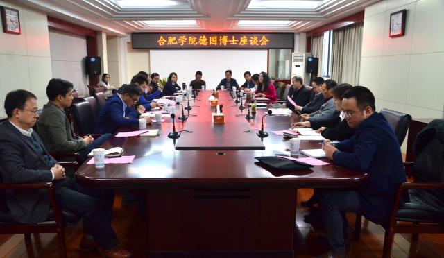 蔡敬民对到场博士表示欢迎并简要介绍了中德教育合作示范基地概况。他指出,合肥学院本着“地方性、应用型、国际化”的办学定位和产教融合的办学理念,致力于培养社会需要的高等应用型人才。他强调,课题实验要学会工程思维,敢于实践,充分利用学校“省市共管”的优资源、大平台,践行创新驱动发展。要进一步加强与德国的联系,将德国先进教育理念与中国教育实际相结合,融入教学工作,推动我校高水平应用型大学建设进程。同时他希望,各位博士能够尽快熟悉环境,在团队中开展工作,多进行学术问题交流,发挥最大潜能。