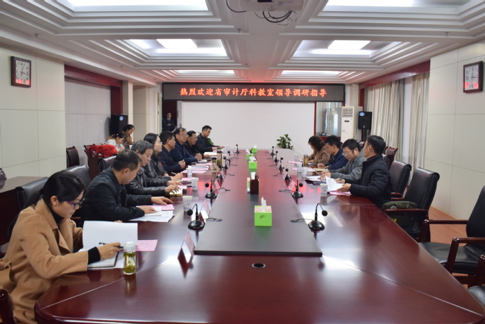 11月30日下午,安徽省审计厅科教审计室副主任施涛、二级调研员何炬、一级主任科员李婧、三级主任科员李亚军等来我校专题调研科研经费使用管理情况,我校在行政楼九楼东会议室召开座谈会,副校长卢平出席并主持会议,科研处、教务处、人事处、计财处、审计处、二级学院相关负责人参加会议。