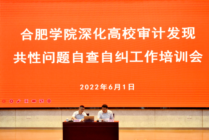 为做好我校深化推进“高校审计发现共性问题自查自纠工作”,迎接审计厅即将对我校开展的经济责任审计,6月1日下午,我校在图书馆学术报告厅A厅召开深化高校审计发现共性问题自查自纠工作培训会,特邀请教育厅二级调研员、采购监管与审计处副处长曹玉建同志开展专题培训,学校科级以上干部、平台负责人参加培训会议,副院长张思扬主持会议并讲话。