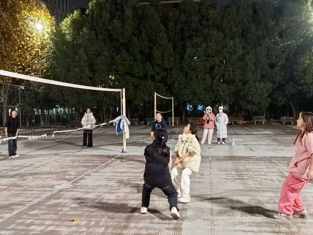 1213日晚上18:30,三期排球场生物食品与环境学院女排与外语学院女排展开对决,2:1的比分赢得比赛的胜利。
