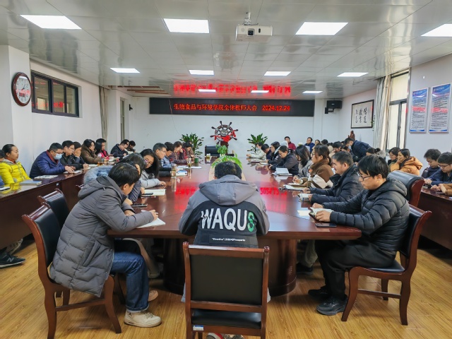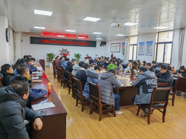 为了全面总结审核评估工作,有序推进期末各项事宜,生物食品与环境学院于1224日在学院三楼会议室召开了2024年秋季学期的第五次全体教职工大会,学院党政领导班子及全体教师参会。会议由学院党委书记李秀娟主持。