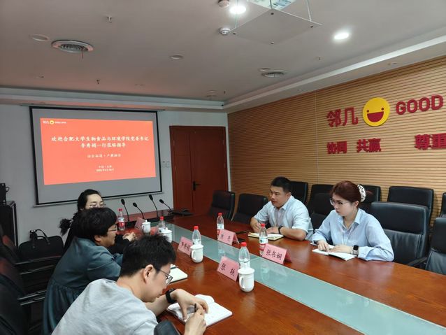 416日下午生物食品与环境学院一行赴安徽邻几便利店有限公司总部开展访企拓岗行动,此次访企拓岗由生物学院党委书记李秀娟带队,副书记晋松、食品专业系主任张轶、教师王郡随行。