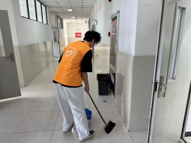 活动开始前,各负责人对参与人员进行了详细的任务分配。在清扫过程中,大家分工明确、配合默契。同学们手持扫帚、抹布等清洁工具,穿梭在教室、走廊和楼梯间,认真擦拭着桌椅、门窗,清扫地面的垃圾,不放过任何一个卫生死角。他们不怕脏、不怕累,以饱满的热情投入到清扫工作中,展现出良好的精神风貌和团队协作能力。经过两个小时的努力,三十五栋教学楼的公共区域焕然一新。教室里桌椅摆放整齐,地面干净整洁;走廊和楼梯也变得宽敞明亮,空气中弥漫着清新的气息。