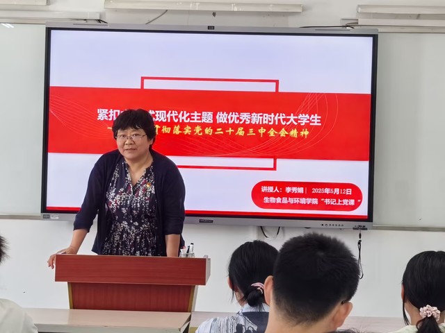 20255121250分,生物食品与环境学院分党校第24期入党积极分子培训班第一课在生-214教室开展,由党委书记李秀娟主讲。