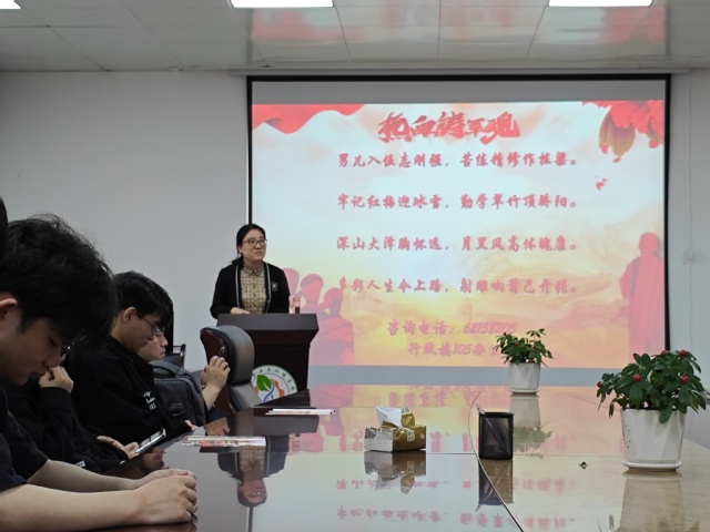 为响应国家征兵号召,鼓励大学生投身国防事业,生物食品与环境学院于523日上午十点半在生化楼三楼会议室成功举办“热血铸军魂——2025年征兵政策宣讲会”。本次宣讲会由学生处国防动员科科长郑国平主讲,生物食品与环境学院党委副书记晋松及部分学生参加。