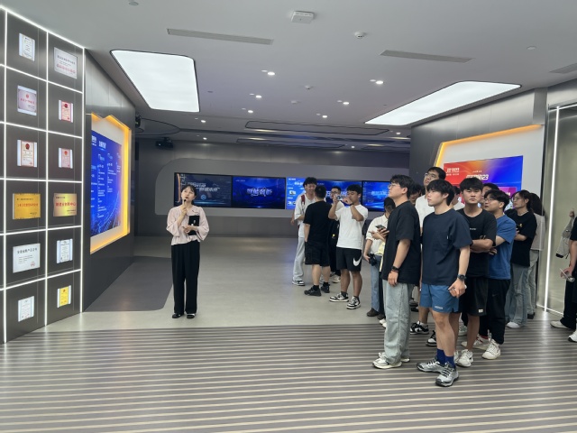 在公司技术负责人的全程陪同下,师生一行先后参观了企业展厅、研发中心以及智能化环保设备生产线。在企业展厅,工作人员系统介绍了公司在生活垃圾处理、环卫一体化服务、再生资源循环利用等核心业务板块的创新技术成果;在研发中心,“智慧云平台”实时跳动的数据与可视化界面,生动展现了其在环境监测与运维管理中的高效应用;智能化生产线上,全自动焊接机械臂精准作业,AI质量检测系统快速甄别瑕疵,全流程生产工艺从原材料加工到成品组装一气呵成。同学们驻足观摩新型环保设备的运作流程,还就垃圾分类处理工艺优化、污染物高效减排技术等专业问题,与企业工程师展开了交流。
