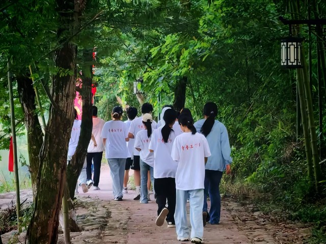 团队抵达大演乡后短暂的休整,队员们便开始了第一天的实地考察。他们沿着乡村小道,边走边看,边问边记,详细了解当地的自然环境、农业生产、村民生活等情况。参观文化景点,感受乡村魅力在调研间隙,团队成员们还参观了当地的文化景点。他们走进乡间小路,走进一片茂密的竹林,感受大自然的清新与宁静。在一处古色古香的凉亭旁,队员们驻足休息,欣赏周围的美景,拍照留念总结交流,明确调研方向讨论了调研中发现的问题和下一步的调研方向我们将重点围绕农业产业发展、生态环境保护、村民生活改善等方面进行深入调研,为乡村振兴贡献我们的智慧和力量。最后合影留念,记录青春足迹大家手持生物食品与环境学院的院旗,面带微笑,留下了珍贵的青春足迹。