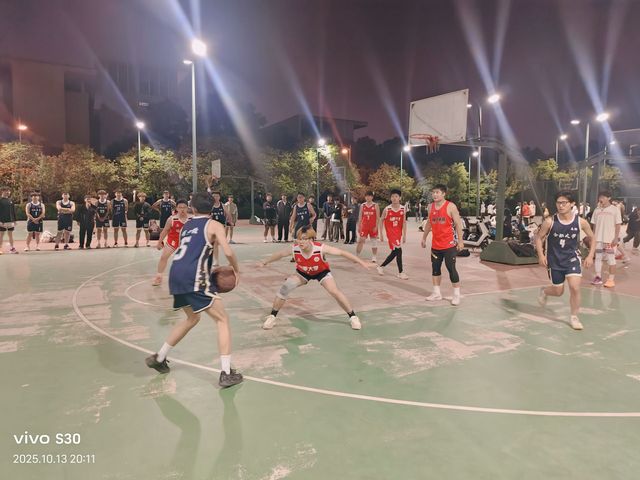 10月13日晚,场外的秋风已然带上了凛冽的寒意,像清凉的泉水,无声地漫过街道。路灯的光晕在寒风中显得孤寂而清冷。然而,篮球场上却完全是另一番天地。汗水砸在滚烫的地板上瞬间蒸发,肌肉的碰撞声、球鞋的摩擦声、观众的呐喊声,汇聚成一股灼热的气浪,将秋夜的寒凉彻底隔绝在外。一场精彩的男篮赛事在一期一号篮球场火热展开,对战双方分别是生物院男篮和设计院男篮。生物院与设计院男生篮球联赛在此上演巅峰对决。经过60分钟激烈争夺,生物院以66:29击败设计院,取得本次比赛胜利。