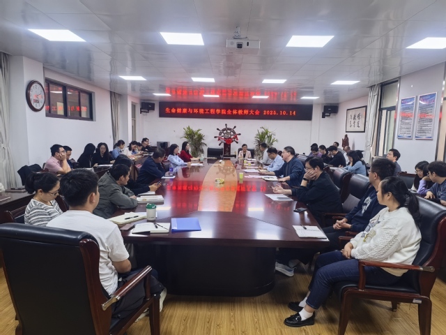 为明确学期中后期工作方向、凝聚共识,推动学院事业规范有序发展,2025年10月14日,生命健康与环境工程学院召开秋季学期第二次全体教师大会。本次会议由学院院长阮班锋主持,学院党政领导班子及全体教师参会。