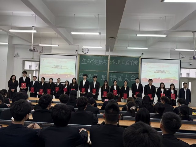 大会在庄严的团歌中开幕。会上,院团委指导杨林老师宣读新任学生会主席团、部长及副部长名单;杨红、姚蓓蓓为离任学生会干部颁发聘书,定格传承时刻。