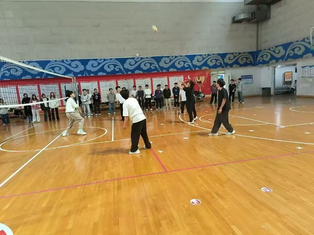 1025日中午12:00,生材合院与教育学院的对决激情上演。比赛一开始,赛场瞬间被点燃。双方队员目光如炬,展现出势不可挡的锐气。他们移动灵活,在网前建立了坚实的防线。场上队员不时拉手相互鼓励,传递默契,他们的身影在灯光下划出矫健的弧线,每一个精彩回合都让看台沸腾,欢呼声此起彼伏。