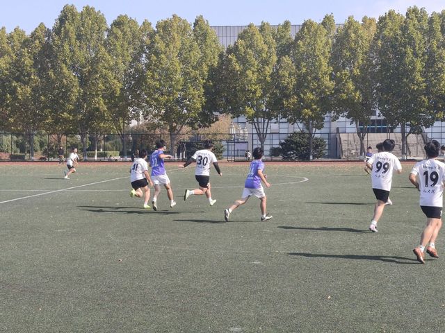 比赛哨声一响,双方球员迅速进入状态,攻防转换节奏明快。智建与生环新生联队凭借默契的团队配合,一开场便展开猛烈攻势,中场球员巧妙传球调度,前锋队员穿插跑位寻找破门良机,多次逼近对方球门制造威胁。人大新生队也毫不示弱,后防线严密布防,守门员反应敏捷,多次化解险情,同时抓住反击机会快速推进,用犀利的边路突破和精准的长传组织起有效进攻,双方你来我往,场面紧张胶着。赛场之上,球员们斗志昂扬、奋勇拼搏。抢断、传球、射门、扑救,每一个动作都凝聚着汗水与专注;奔跑、呐喊、协作、坚持,每一个瞬间都彰显着青春与热血。