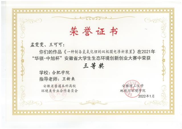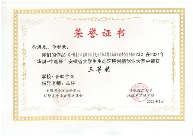 2021年安徽省大学生生态环境创新创业大赛