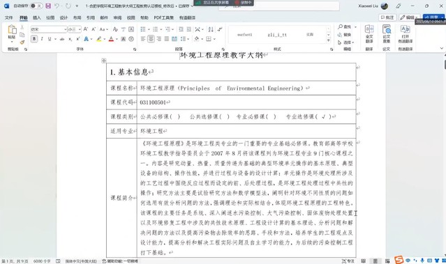 环境工程专业召开工程教育认证核心课程材料研讨会