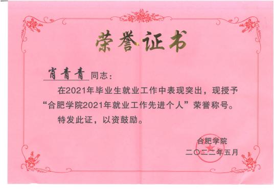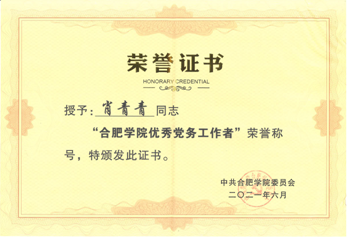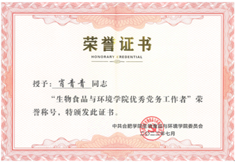 肖青青,女,博士,副教授,1984年生。2014年博士毕业于中山大学,20151月至20177月进入安徽省农业科学院工作,任助理研究员,20178月进入合肥学院生物食品与环境学院工作,兼任2017级硕士研究生辅导员,20189月至今担任生物食品与环境学院食品质量与安全教工党支部书记,201812月被评为副教授,20201月以来同时担任食品工程系主任、食品质量与安全专业负责人。20178月至今在合肥学院生物食品与环境学院食品质量与安全专业工作,2018年担任食品质量与安全教工党支部书记,2020年担任食品工程系主任、食品质量与安全专业负责人。在社会学术团体层面,2015年被评为国家油料作物质量安全风险评估岗位专家,2020年安徽省农产品安全专业委员会理事,2021年合肥市食品行业协会理事。以下是肖青青同志的个人事迹具体情况: