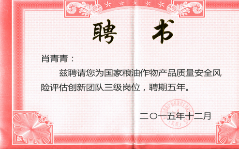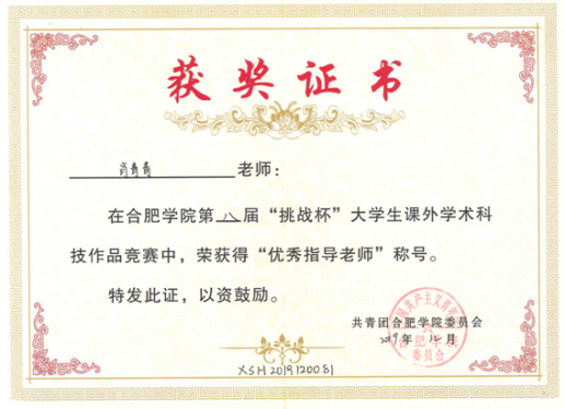 肖青青同志在科研工作方面紧密围绕专业需求和发展,主要从事食品安全与农业环境污染防治等方面的科研工作。主持完成国家自然科学基金青年基金项目1项、国家重点研发计划子课题1项、安徽省自然科学基金青年基金项目1项、合肥市科技局对外合作借转补项目、横向校企合作项目1项、发表论文20篇(SCI论文5篇、中文论文4篇,其中中科院分区大类一区SCI论文2篇、CSCD论文1篇、中文核心期刊论文1篇)。授权实用新型专利5项、软著6项、科技论文获奖1项。
