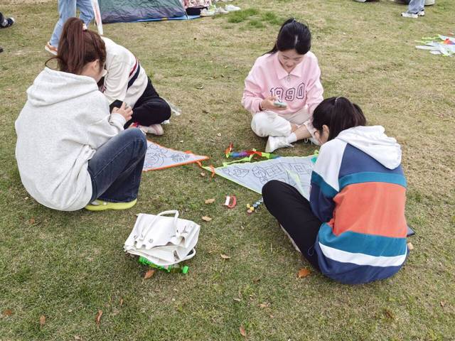 本次活动的目的是让同学们在繁忙的生活中找到一次与自然亲近的机会,通过亲手制作风筝的过程,感受到内心的平静与愉悦。在活动中,同学们每两人一组领取风筝进行DIY设计,这不仅是一次放松身心的机会,更是一次释放心灵的旅程。同学们用由学院提供的风筝和颜料,发挥自己的创意,将风筝装饰得五彩斑斓。当风筝随风飞舞时,他们发现内心的烦恼也随之飘散,留下的是一片宁静与欢乐。这次活动得到了大家的热烈响应和积极参与,同学们纷纷表示,通过这个活动,他们不仅释放了内心的压力,还找到了与朋友共享的乐趣,感受到了生活的美好。