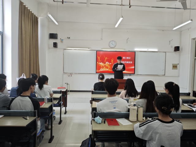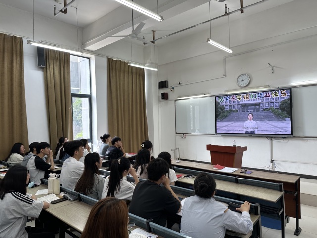 活动伊始,两位优秀毕业生党员分别就就业创业和考研分享了他们的宝贵经验,给正处于迷茫期的学弟学妹们莫大的支持与鼓励。学生代表闵永康对毕业生党员为支部和班级所做的贡献表示感谢,并祝愿他们前程似锦,未来可期。支部书记陈玲随后发表了讲话,她对毕业生党员的表现给予了高度的评价,希望他们在未来的发展道路上不忘初心,牢记使命,继续发挥党员的先锋模范作用。