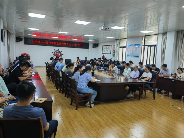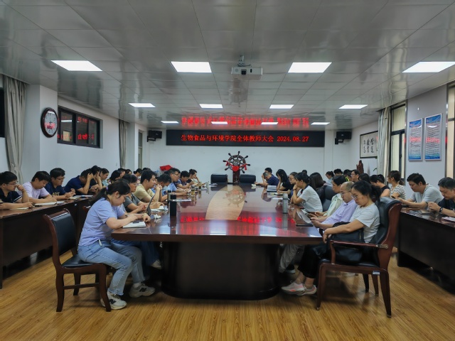 为贯彻落实党的二十届三中全会精神,推动学院高质量发展,保障新学期工作有条不紊的开展,8月27日,生物食品与环境学院组织开展了2024年度秋季学期第一次全院教职工大会,学院党政领导班子及全体教师参会。会议由学院副院长(主持工作)阮班锋主持。