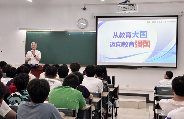 6月3日下午,校党委书记邬平川来到35-108教室,以“从教育大国迈向教育强国”为题讲授本学期的《形势与政策》课,受到23级网络工程、软件工程和计算机科学技术等班学生的热烈欢迎。