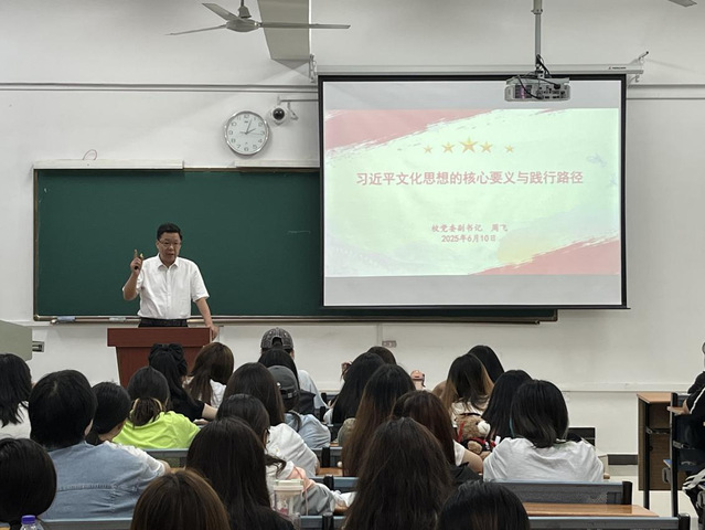 为深入贯彻落实习近平总书记关于思政课建设的重要指示精神,扎实推进学校思想政治教育工作,610日下午,校党委副书记周飞走进思政课堂,为24级产品设计专业的98名学生带来了一主题为习近平文化思想的核心要义与践行路径思政课