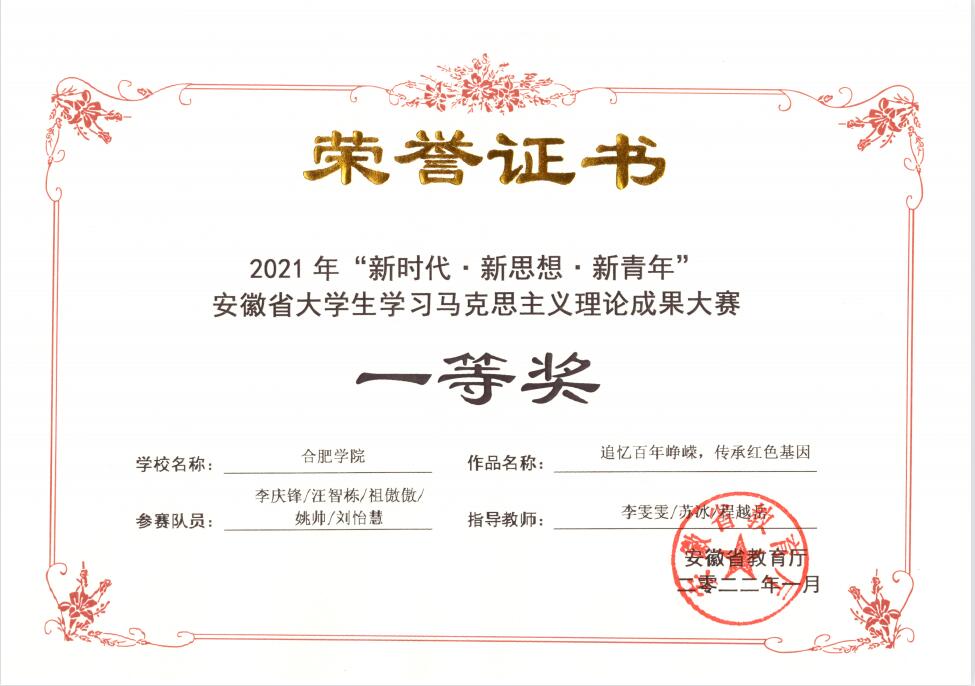 2021合肥学院-李庆锋、汪智栋、祖傲傲、姚帅、刘怡慧-微创作《追忆百年峥嵘,传承红色基因》省级一等奖