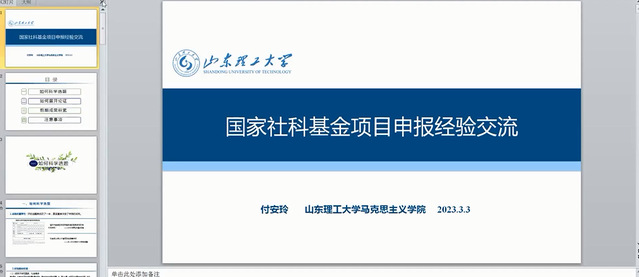 付安玲教授从“如何科学选题”、“如何展开论证”、“前期成果积累”以及“注意事项”四个方面分享了申报国家社科基金项目的成功经验。报告深入浅出、语言生动,对选题依据、研究内容、思路方法、参考文献等具体论证过程中的易错点和注意事项进行了详尽的阐述。
