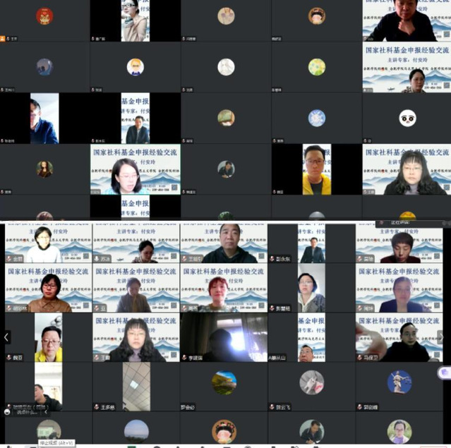 为进一步提高马克思主义学院教师申报国家社科基金项目的积极性、营造浓厚的学术氛围,2023年33上午马克思主义学院邀请中宣部“马克思主义理论骨干人才计划”(“百人计划”)首批博士山东理工大学高层次人才“双百工程”第二层次、硕士生导师付安玲教授为学院教师作国家社科基金项目申报经验交流”的学术报告。本次报告合肥学院科研处和马克思主义学院主办、合肥学院科协协办,通过腾讯会议方式进行,90余名教师聆听了此次报告。