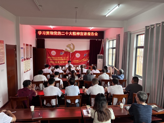 马克思主义学院院长、安徽省委讲师团高端宣讲专家陈志超教授为基层党员群众作“深入学习习近平新时代中国特色社会主义思想,牢记‘三个务必’,奋力谱写新时代更加华丽篇章”专题宣讲报告。阐述了习近平新时代中国特色社会主义思想的科学体系、核心要义、实践要求、世界观和方法论的理论知识,并就在奋进征程中我们如何牢记并践行“三个务必”进行了重点讲解,整场宣讲理论性强、针对性高,深入浅出、内涵丰富,对全体党员干部深刻领会、准确把握党的二十大精神具有重要帮助。