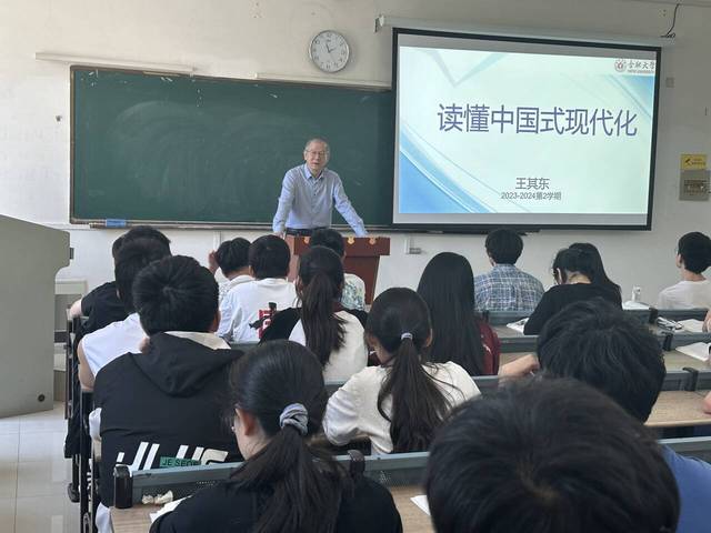 王书记首先从现代化的概念出发,介绍了中国式现代化的发展历程和基本特征。接着分析了我国迈向现代化新征程面临的战略机遇和风险挑战,就如何走稳走好中国式现代化道路,新时代怎样高质量发展等方面阐释了中国式现代化的丰富理论。最后,王书记告诉在场的同学们,中国式现代化走得通、行得稳,是强国建设、民族复兴的唯一正确道路,当代大学生生逢其时,迎来了实现抱负、施展才华的难得机遇,更肩负着全面推进强国建设、民族复兴伟业的时代重任。要切实增强历史责任感和使命感,怀抱梦想又踏实学习,奋力书写为中国式现代化挺膺担当的青春篇章。