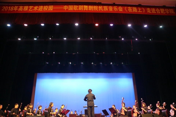 4月25日,2018年高雅艺术进校园之中国歌剧舞剧院民族乐团《在路上》民族音乐会在致用礼堂举行,千余名师生共同观看此次演出。正式演出之前,副校长刘建中致辞。