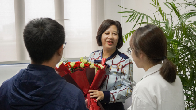 早晨的太阳刚刚升起,负责此次活动的学生们就已经开始忙碌,他们从搬花、挑选到写贺卡,一切都在老师们到达学校之前准备就绪。乘载着老师们的大巴车一辆辆驶来,学生们位列两侧,为每位老师送上鲜花以及他们的问候。老师们面带笑意,接受学生们的祝福并表示感谢,现场一片其乐融融。