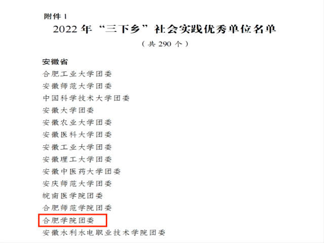 合肥学院团委荣获全国暑期“三下乡”社会实践优秀单位