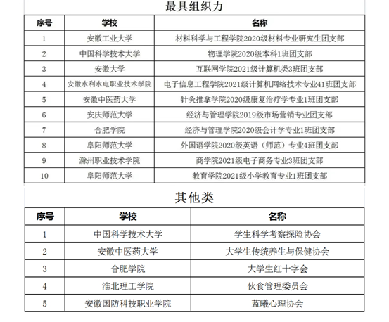 近日,由共青团安徽省委员会、安徽省学生联合会主办的2022年安徽省高校联通杯“活力团支部”“活力社团”风采展示活动落下帷幕。经广泛选树、校级展示、省级展示等环节,我校经济与管理学院2020级会计学专业1班团支部荣获“活力团支部”称号,大学生红十字会荣获“活力社团”称号。