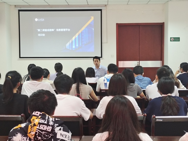 5月26日中午,“第二课堂”系统使用培训会在行政楼一楼会议室召开,团委老师、各二级学院团委负责人及学生负责人参会,智圣新创公司技术负责人侯锟作为主讲人。