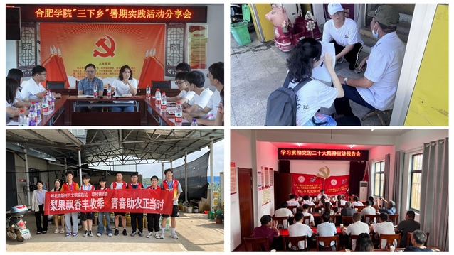 校学生会红色“中”流砥柱,振兴“分”秒必争实践队以芜湖市繁昌区中分村为调研目标,采用线上+线下结合的方式进行实地调研,为推动当地的经济发展建言献策;经济与管理学院团队对滁州市琅琊区半塔镇龙池社区居民进行财商课程培训,普及货币的概念和发展历史;人工智能与大数据学院积极参与宣城广德市邱村镇的蜜梨摘采、包装等工作,一定程度上缓解当地人力资源紧张的问题;马克思主义学院赴安庆市太湖县天华镇西冲村开展党的二十大精神宣讲,结合群众最关心的问题,用形象生动的语言、实例解析家乡的变化及未来展望。
