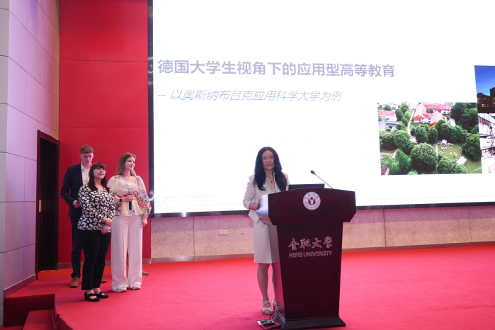 奥斯纳布吕克应用科学大学的陈颖教授与双元制学生团队以奥斯纳布吕克应用科学大学为例分析了德国大学生视角下的应用型高等教育,分享了中德双元制高等教育发展成果。
