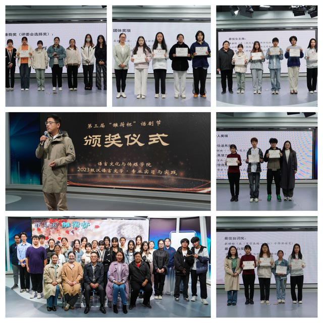 10月31日,汉语言文学“专业实习与实践”汇报演出暨第三届“雏荷杯”话剧展演大赛在一期9栋演播厅成功举办。2023级汉语言文学“专业实习与实践”课程全体指导老师以评委身份出席。