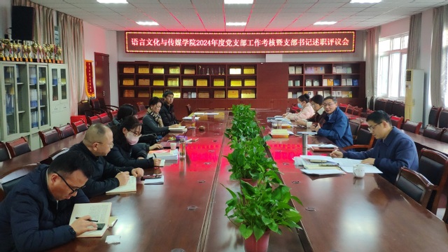 按照校党委组织部《关于开展2024年度党支部工作考核和党支部书记述职评议考核工作的通知》要求,1月13日下午,语言文化与传媒学院党委在学院大会议室召开2024年度党支部工作考核暨党支部书记述职评议会。院党委领导班子成员、科级干部及各党支部书记参加,会议由院党委书记储昭辉主持。