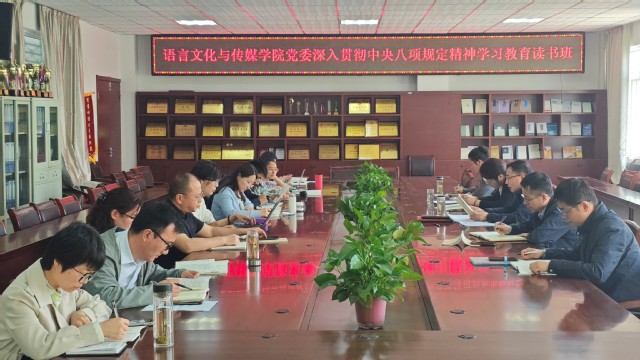 储昭辉首先传达学习了习近平总书记在贵州、云南考察时发表的重要讲话精神和3月31日中共中央政治局会议精神以及学校第四届第三次“两代会”会议精神;然后解读了《语言文化与传媒学院党委深入贯彻中央八项规定精神学习教育读书班实施方案》,领学了《习近平关于加强党的作风建设论述摘编》第一章“党的作风关系人心向背,决定党和国家事业成败”。党委委员、副院长殷明明领学了《习近平关于加强党的作风建设论述摘编》第二章“作风问题本质上是党性问题”。会上还传达学习了中央八项规定及其实施细则精神。