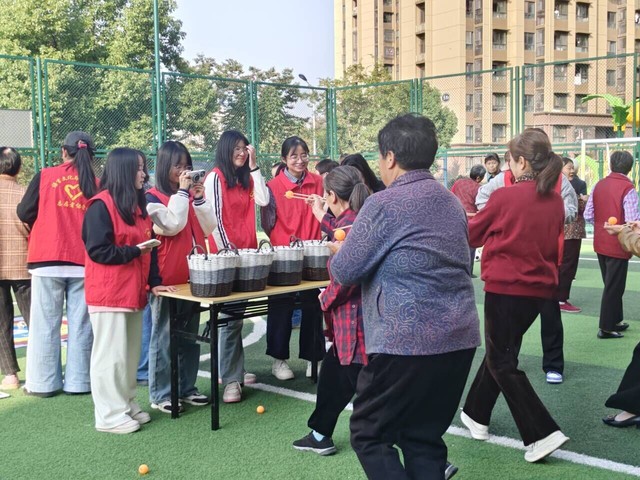 志愿者们于10月24日下午2:00出发,有序前往社区开展运动会,与工作人员相互配合,分工协作,组织了夹乒乓球、足球射门、丢沙包一系列运动项目。老人们在活动结束后按成绩领取了不同的奖品,现场充满了运动与欢乐的氛围。