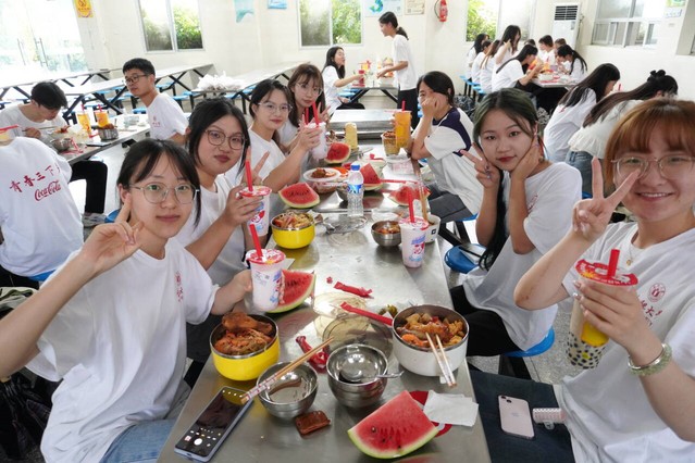 中午十二点,后勤组的成员们为大家准备了十分丰盛的午饭。在为期十天的暑期“三下乡”社会实践活动中,不管是烈日当头的36摄氏度高温天气,还是电闪雷鸣的暴雨天气,大家都勤勤恳恳的工作,任劳任怨,按时开展工作并顺利完成每项任务。这顿美食不仅是对大家辛勤工作的慰藉和嘉奖,更是对大家工作的肯定与认同,是对整个暑期“三下乡”社会实践活动的圆满收尾。大家不仅吃得开心,也聊得畅意,从一开始大家彼此之间还不太熟悉,到现在能够坐在一起谈笑风生,三下乡带来的意义不仅是对乡村文化的传承与弘扬,不仅是热心服务乡民的志愿工作,同时还更加增强了一个团队的凝聚力和向心力。