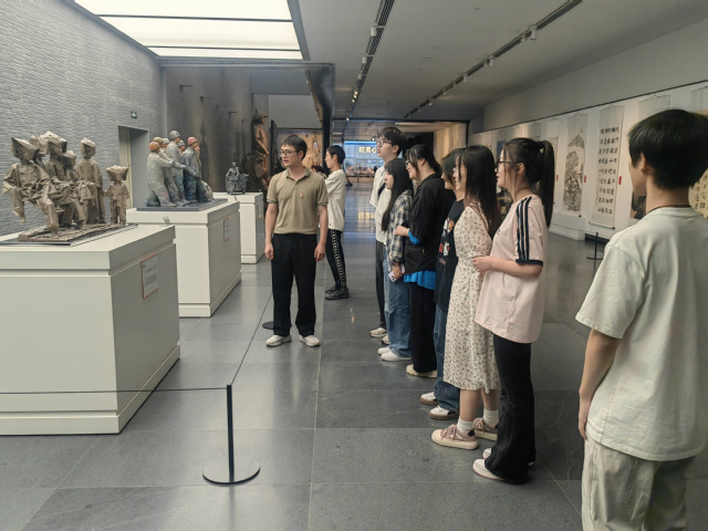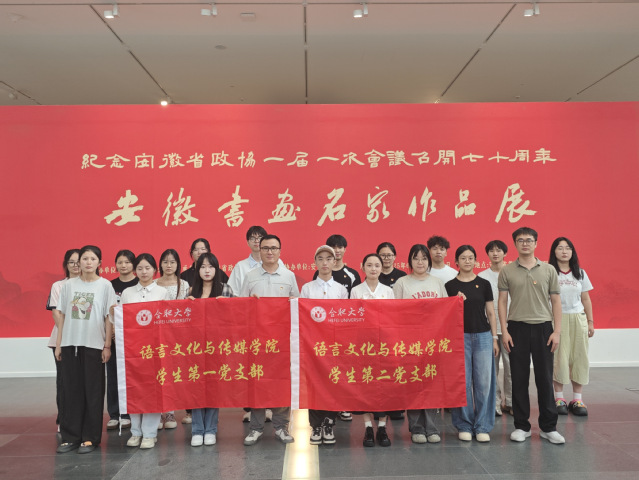 为深入学习贯彻习近平文化思想,庆祝建党104 周年,6月27日上午,语言文化与传媒学院学生第一、第二党支部联合前往安徽省艺术馆开展主题党日活动。党员们走进“纪念安徽省政协一届一次会议召开七十周年·安徽书画名家作品展” 现场,在艺术与历史交融中体悟红色文化,并重温入党誓词。